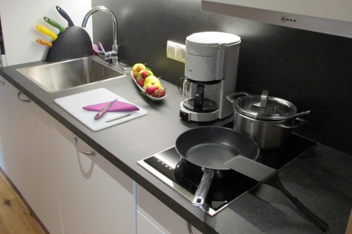 Esposto verso ovest, luminoso, l’appartamento di ca. 36 mq situato al secondo piano, dispone di una camera doppia, un bagno spazioso con doccia, WC, bidet e asciugacapelli, un soggiorno abitabile con angolo cottura, divano letto (doppio), tavolo e televisore a schermo piatto.